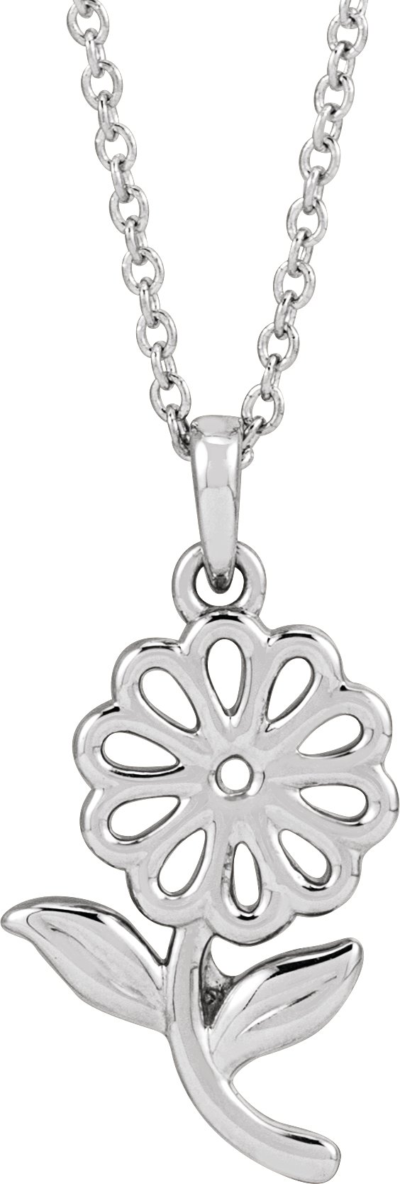88450 / Necklace / Sterling Silver / 20.52 X 10.69 Mm / 16-18 In / Polished / Flower Necklace