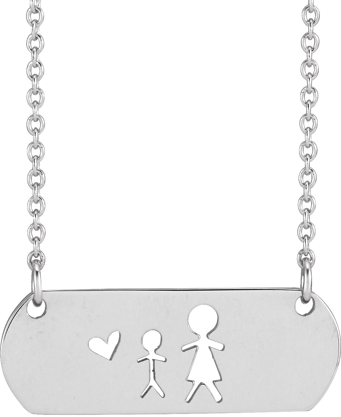 87477 / Necklace / Sterling Silver / Mother-Son / 21.5 X 8 Mm / 18 In / Polished / Stick Figure Family Necklace