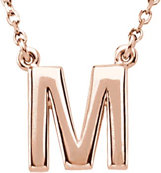 84634 / Necklace / 14K Rose / Initial M / 16 In / Polished / Block Initial Necklace