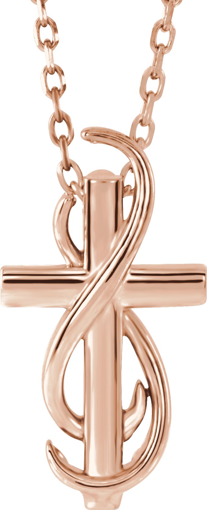 R42371 / Necklace / 14K Rose / 8 X 14.9 Mm / 16-18 In / Polished / Cross Necklace