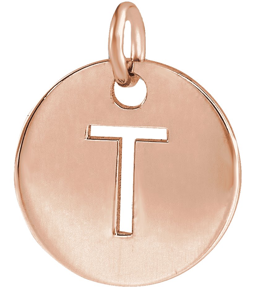 87101 / Pendant / 14K Rose / Initial T / 10 Mm / Polished / Initial Disc Pendant