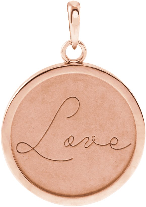 14K Rose Love Engraved 18 mm Disc Pendant
