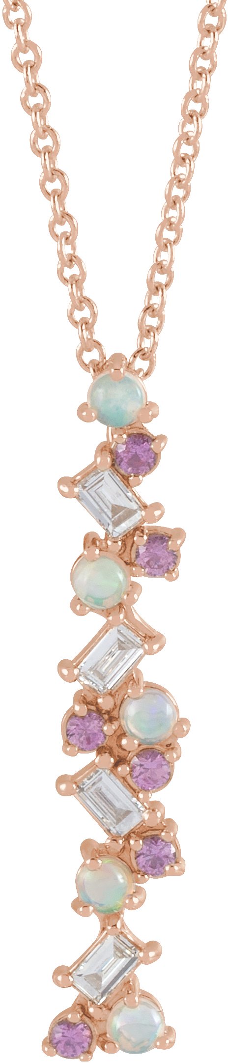 87049 / Necklace / Set / 14K Rose / Ethiopian Opals, Pink Sapphires, Diamonds / 16-18 In / Si2-Si3, Ghi :: 1/8 Ctw / Polished / Scattered Multi-Gemstone Necklace