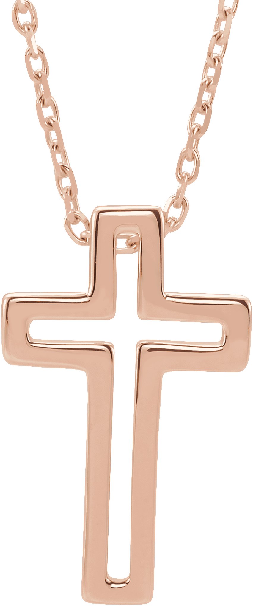 R42353 / 14K Rose / Polished / Open Cross Necklace