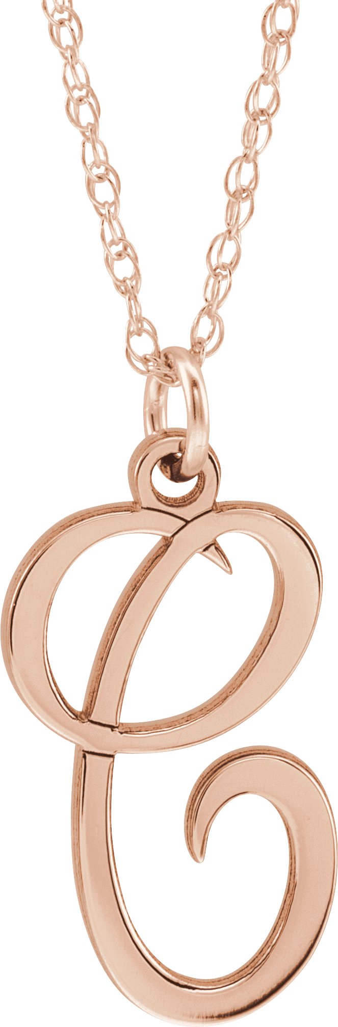 87090 / 14K Rose / C / 16-18 In / Polished / Script Initial Necklace