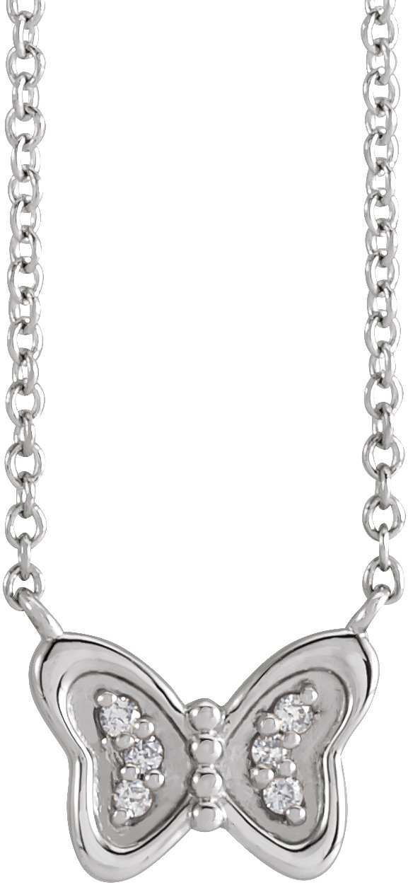 87388 / Necklace / Set / 14K White / Round / Natural Diamond / 1Mm :: 0.025 Ctw / I1, G-H / 18 In / Polished / .025 Ctw Natural Diamond Butterfly Necklace