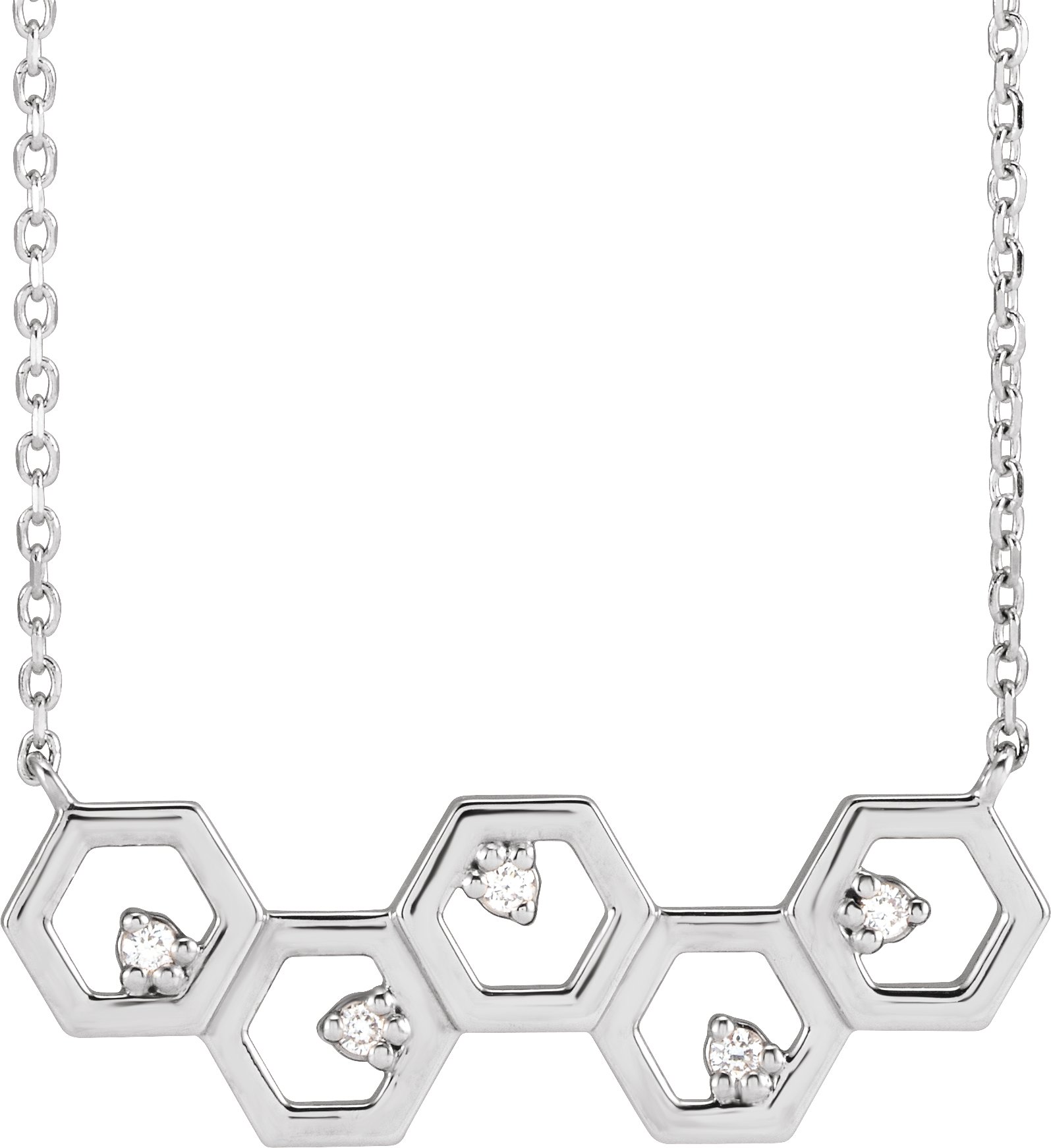 87525 / Necklace / Set / 14K White / Round / Natural Diamond / 1.3Mm :: 0.04 Ctw / I1, G-H / 18 In / Polished / .04 Ctw Natural Diamond Honeycomb Necklace