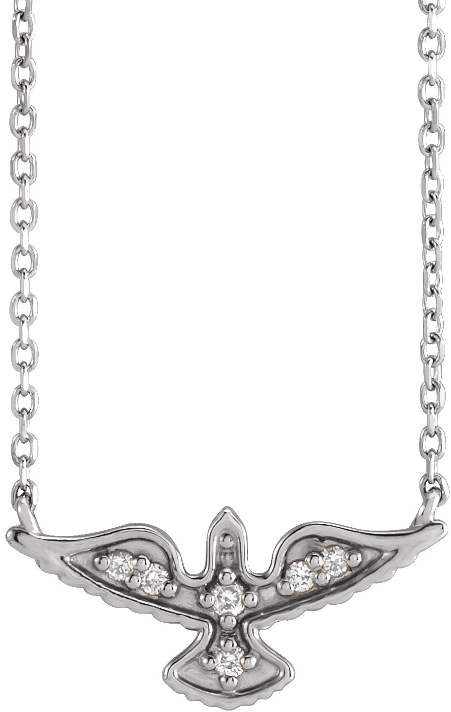 87401 / Set / Natural Diamond / Round / Necklace / 14K White / I1, G-H :: 0.05 Ctw / 17.38 X 8.63 Mm / 18 In / Polished / .05 Ctw Natural Diamond Petite Holy Spirit Necklace