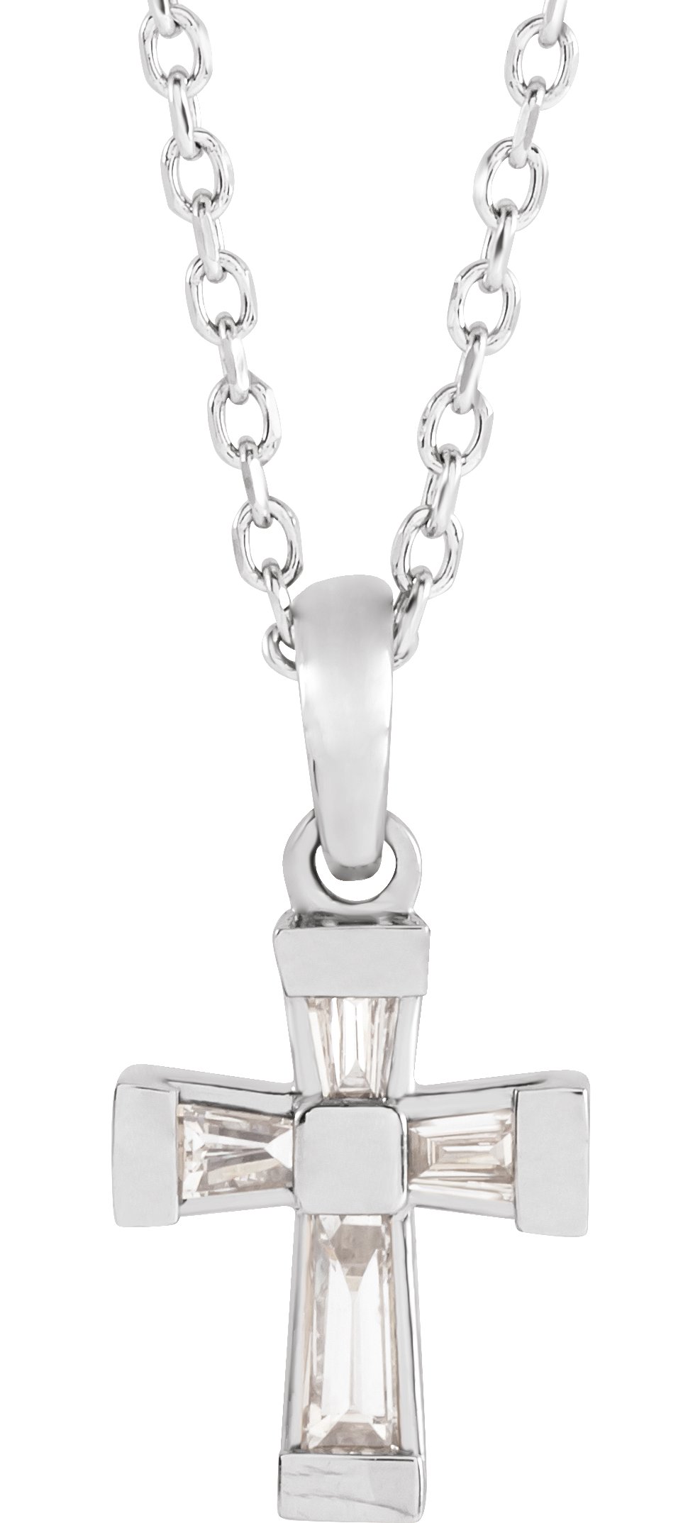 R42405 / Necklace / Set / 14K White / Tapered Baguette / Natural Diamond / 4 X 1.5 X 1Mm :: 1/10 Ctw / Natural Diamond / Si2-Si3, Ghi / 16-18 In / Polished / 1/10 Ctw Natural Diamond Baguette Cross Necklace