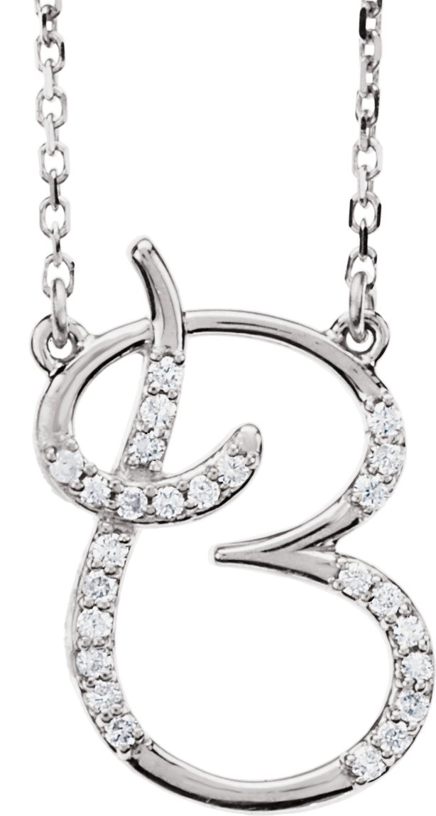 67399 / Necklace / Set / 14K White / Initial B / Natural Diamond / Round / 1 Mm / I1, G-H :: 1/10 Ctw / 16 In / Polished / 1/10 Ctw Natural Diamond Initial Necklace