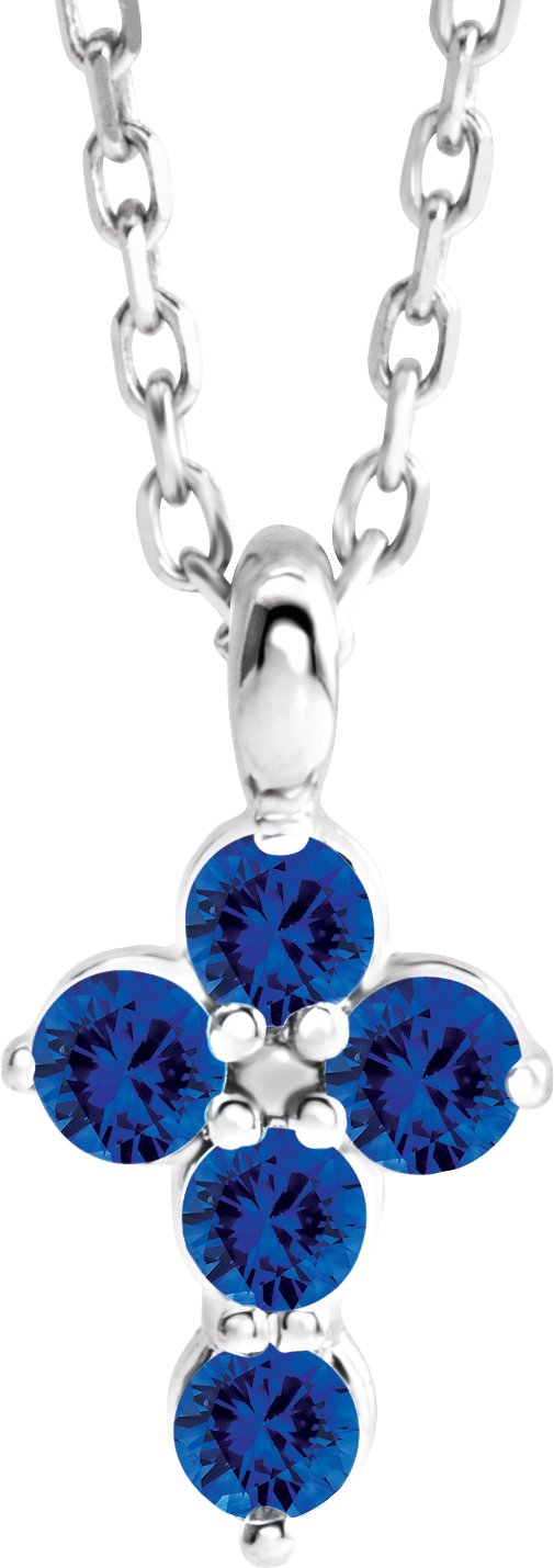 R42363 / Necklace / Set / 14K White / Blue Sapphire / 11.5 X 6.1 Mm / 16-18 In / Polished / Genuine Blue Sapphire Cross Necklace