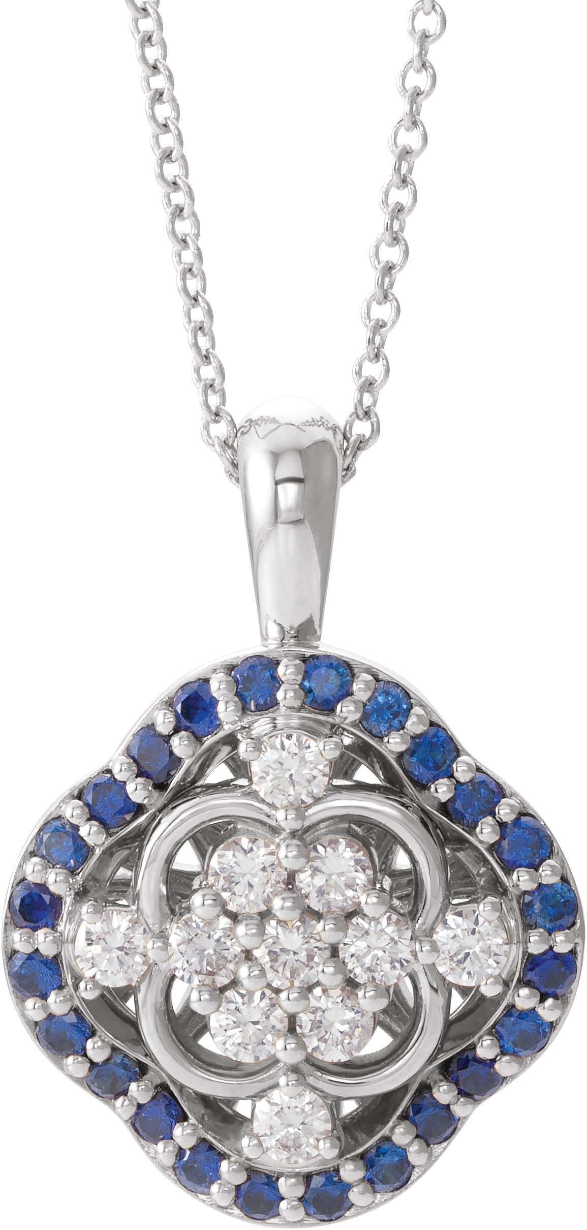 86867 / Necklace / Set / 14K White / Polished / Natural Blue Sapphire And 1/3 Ctw Natural Diamond Cluster Necklace