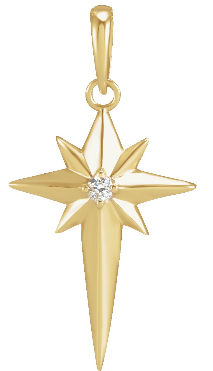 14K Yellow .03 CT Natural Diamond Star Cross Pendant