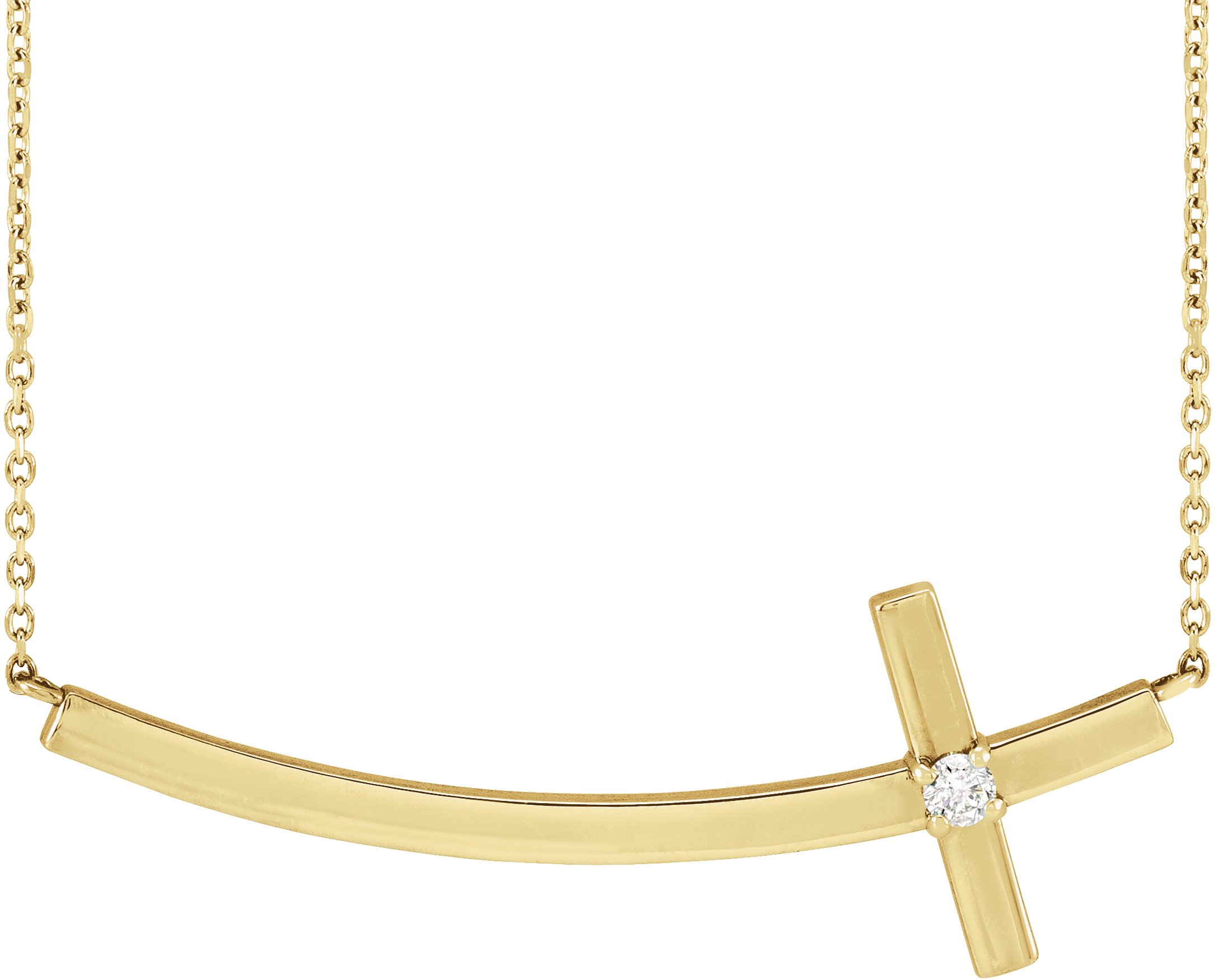 R42408 / Necklace / Set / 14K Yellow / Round / Natural Diamond / 2.5Mm :: 0.06 Ct / I1, G-H / 18 In / Polished / .06 Ct Natural Diamond Curved Sideways Cross Necklace
