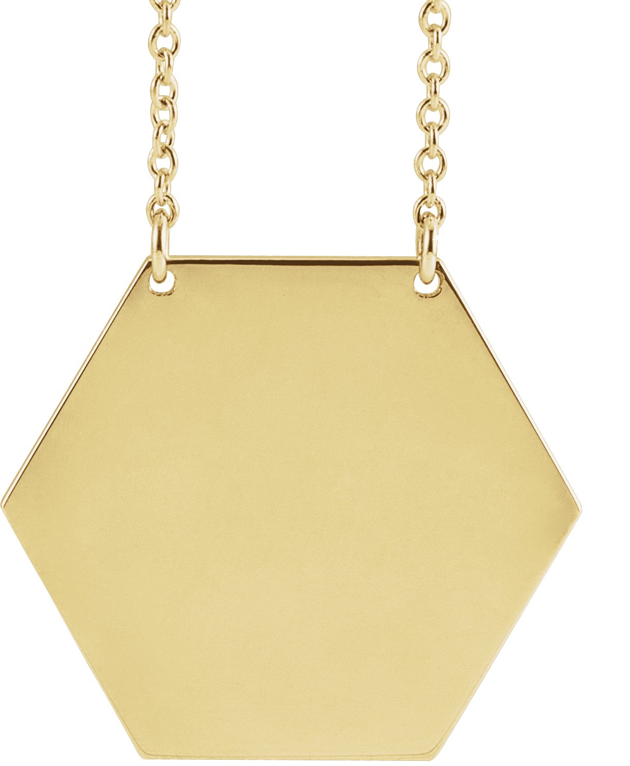 14K Yellow 20 mm Engravable Hexagon 18" Necklace