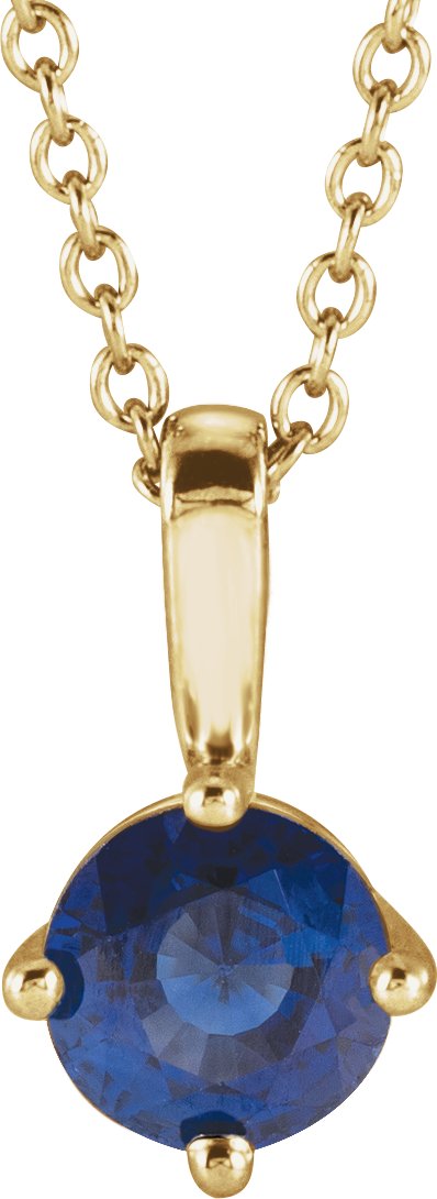 14K Yellow 5 mm Round Blue Sapphire Solitaire 16-18" Necklace