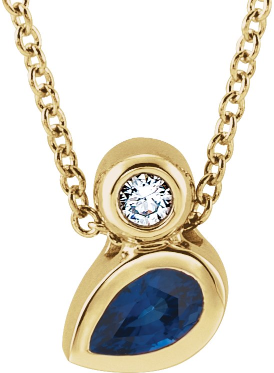 87206 / Necklace / Set / 14K Yellow / Pear / Natural Blue Sapphire / 5 X 3Mm :: 0.03 Ct / Natural Diamond / I1, G-H / 16-18 In / Polished / Natural Blue Sapphire And .03 Ct Natural Diamond Bezel-Set Necklace
