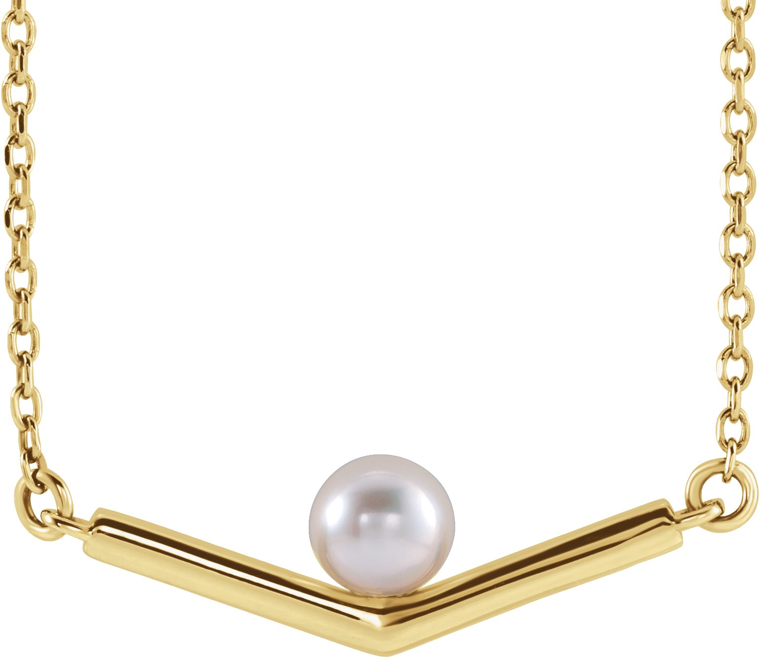 87327 / 14K Yellow / Set / Necklace / 4.0Mm / 20.41 X 4.65 Mm / Cultured White Akoya Pearl / 16 In / Polished / White Akoya Pearl Chevron Necklace