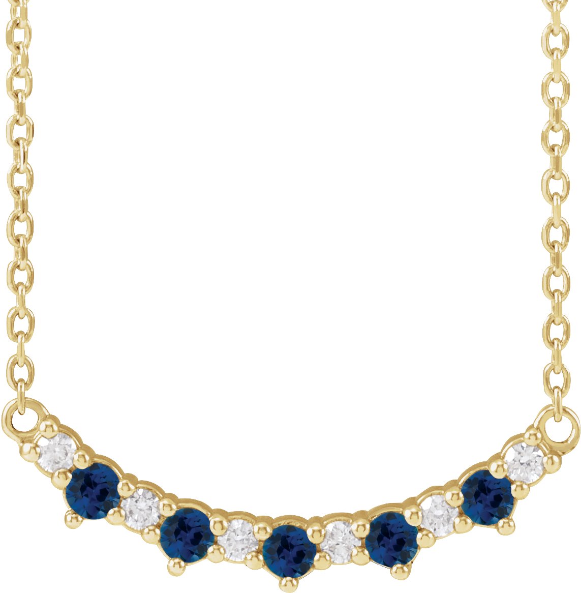 88149 / Necklace / 14K Yellow / Set / 5-Stone / Lab-Grown Blue Sapphire / Round / 2 Mm / Natural Diamond / I1, G-H :: 0.08 Ctw / 18 In / Polished / Lab-Grown Blue Sapphire And .08 Ctw Natural Diamond Five-Stone Bar Necklace