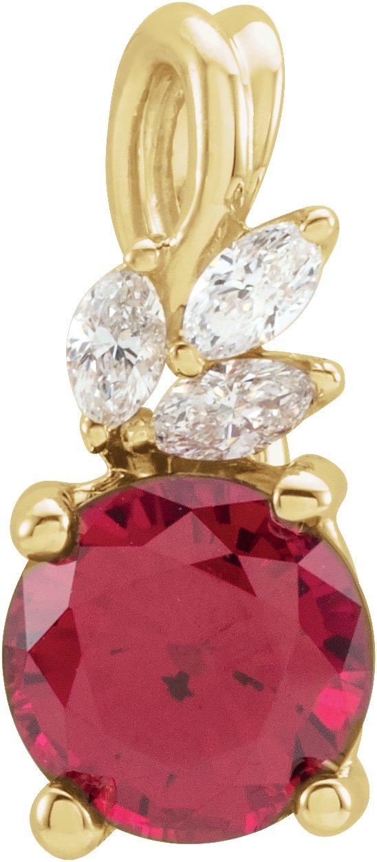 14K Yellow Lab-Grown Ruby & 1/10 CTW Diamond Pendant