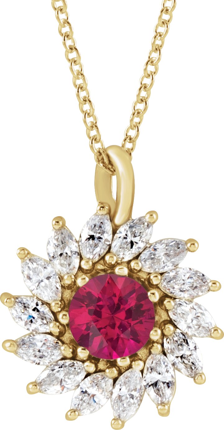 87232 / Necklace / Set / 14K Yellow / Round / Lab-Grown Ruby / 4.5Mm :: 5/8 Ctw / Natural Diamond / I1, Ghi / 16-18 In / Polished / Lab-Grown Ruby And 5/8 Ctw Natural Diamond Halo-Style Necklace