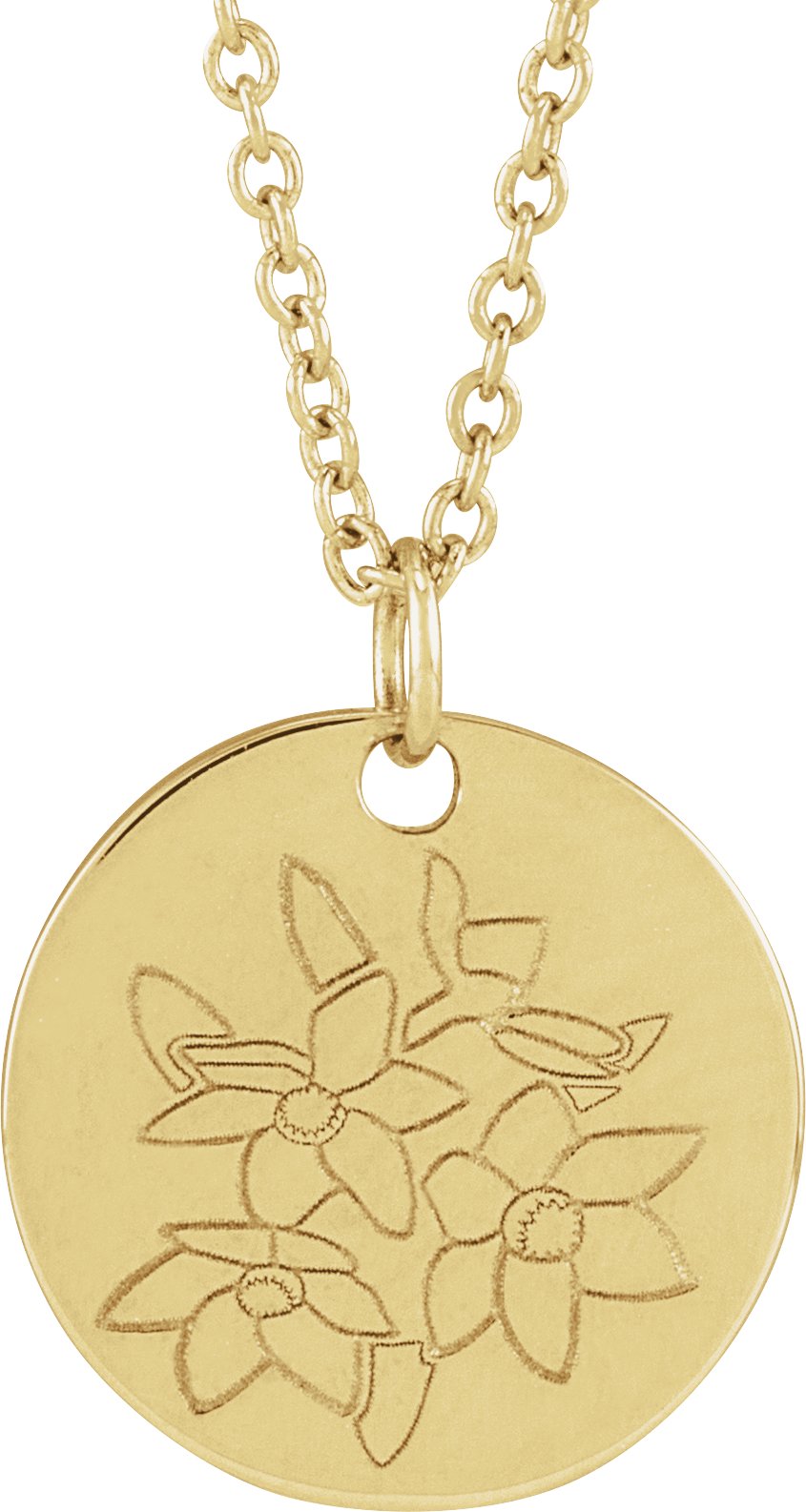 14K Yellow Narcissus December Birth Flower 16-18" Necklace