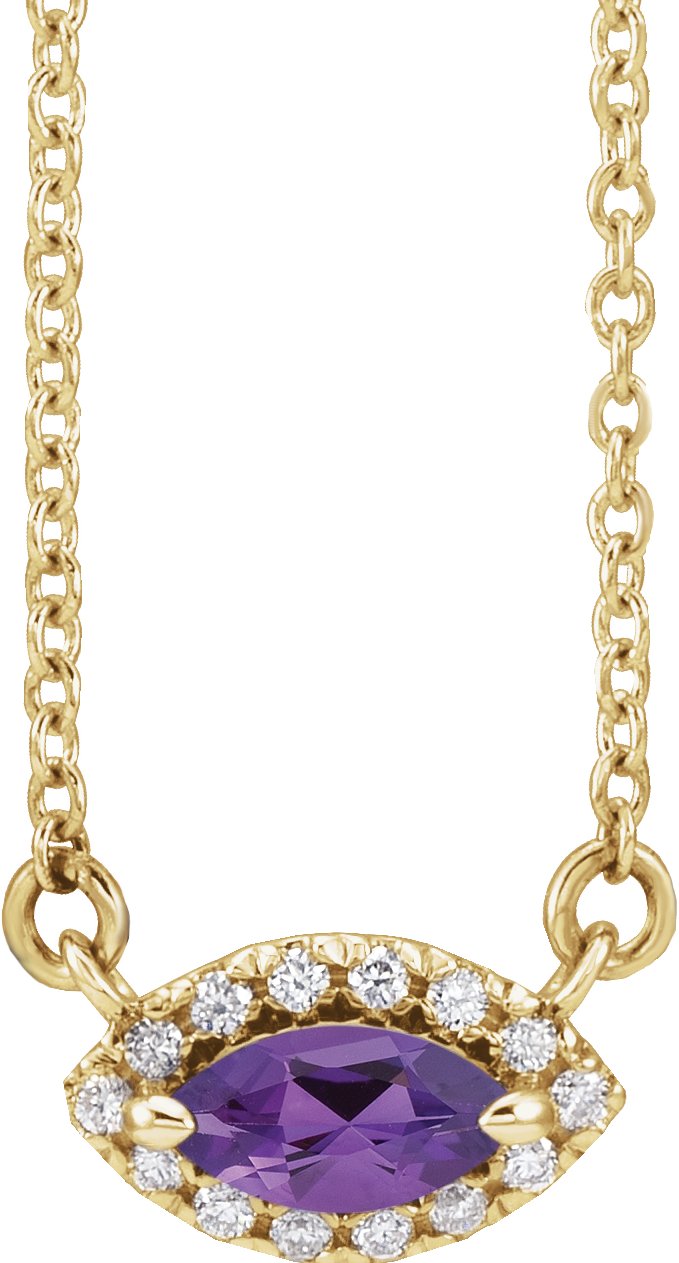 87004 / Necklace / Set / 14K Yellow / Marquise / Natural Amethyst / 6 X 3Mm :: 0.05 Ctw / Natural Diamond / I1, G-H / 16 In / Polished / Natural Amethyst And .05 Ctw Natural Diamond Necklace