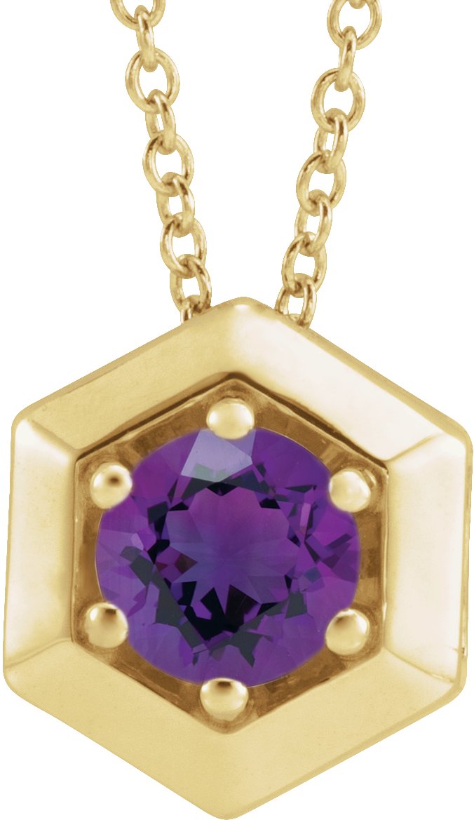 14K Yellow Natural Amethyst Geometric 16-18" Necklace