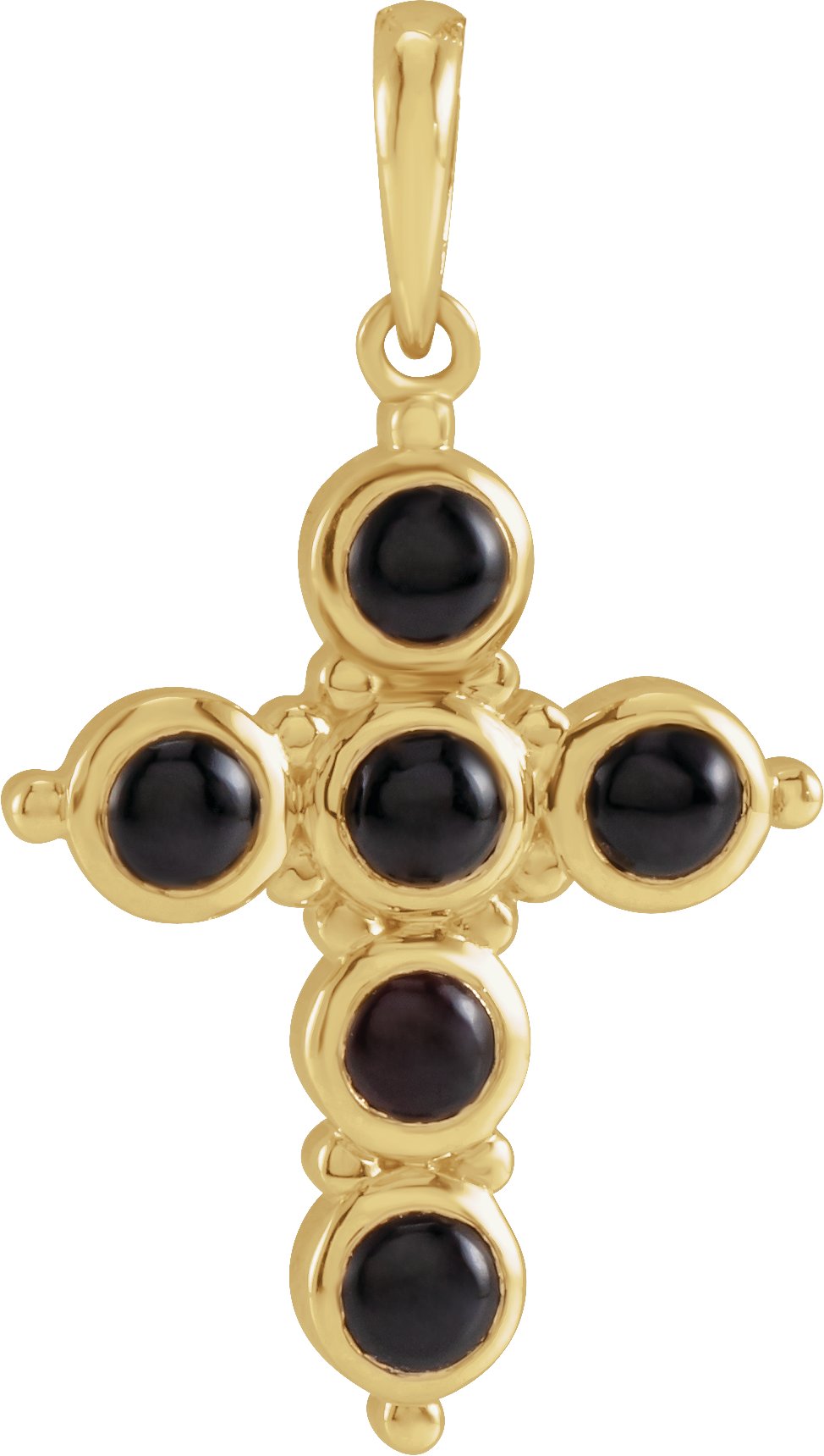 R42394 / Pendant / Set / 14K Yellow / Round / Natural Black Onyx / 3 Mm / Polished / Black Onyx Cabochon Cross Pendant