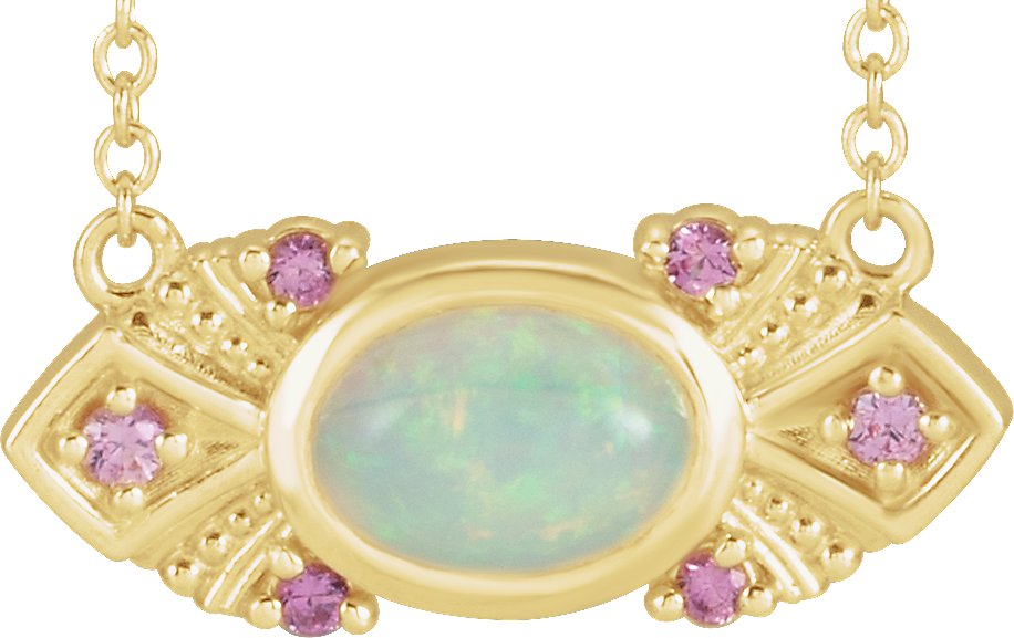 87060 / Necklace / Set / 14K Yellow / Oval / Natural Ethiopian Opal / 7 X 5 Mm / Natural Pink Sapphire / 18 In / Polished / Natural Ethiopian Opal And Pink Sapphire Necklace