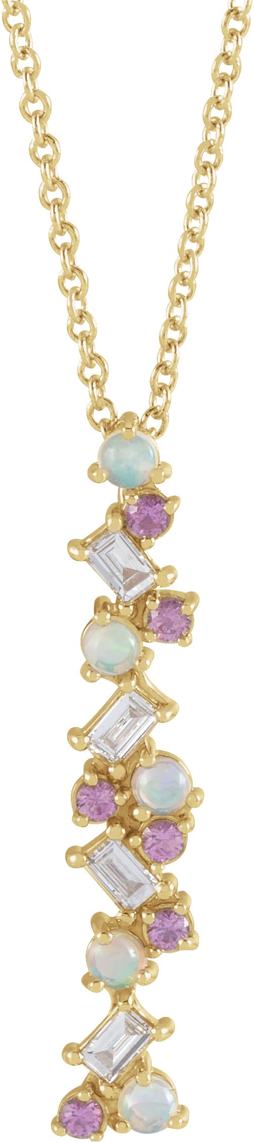 87049 / Necklace / Set / 14K Yellow / Ethiopian Opals, Pink Sapphires, Diamonds / 16-18 In / Si2-Si3, Ghi :: 1/8 Ctw / Polished / Scattered Multi-Gemstone Necklace