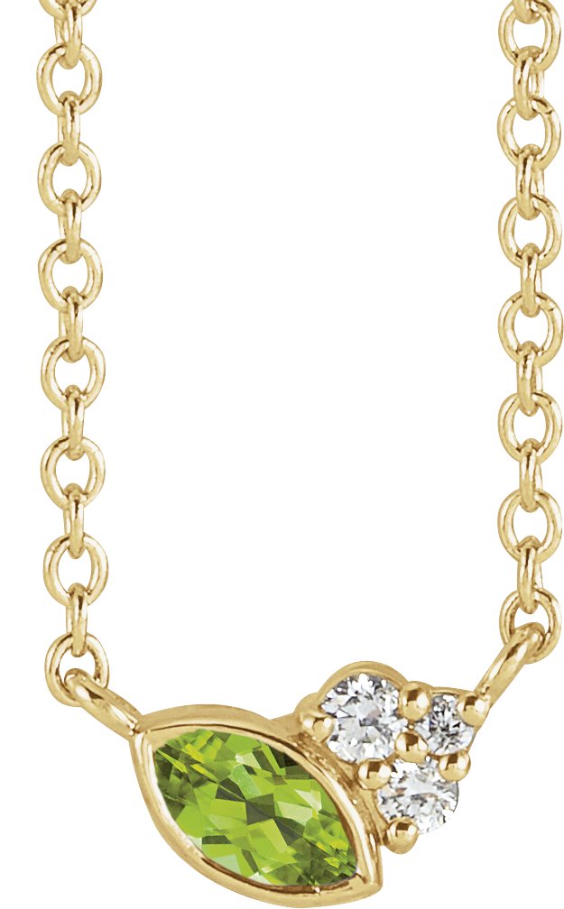 87094 / Necklace / Set / 14K Yellow / Marquise / Natural Peridot / 4 X 2Mm :: 0.03 Ctw / Natural Diamond / I1, G-H / 18 In / Polished / Natural Peridot And .03 Ctw Natural Diamond Necklace