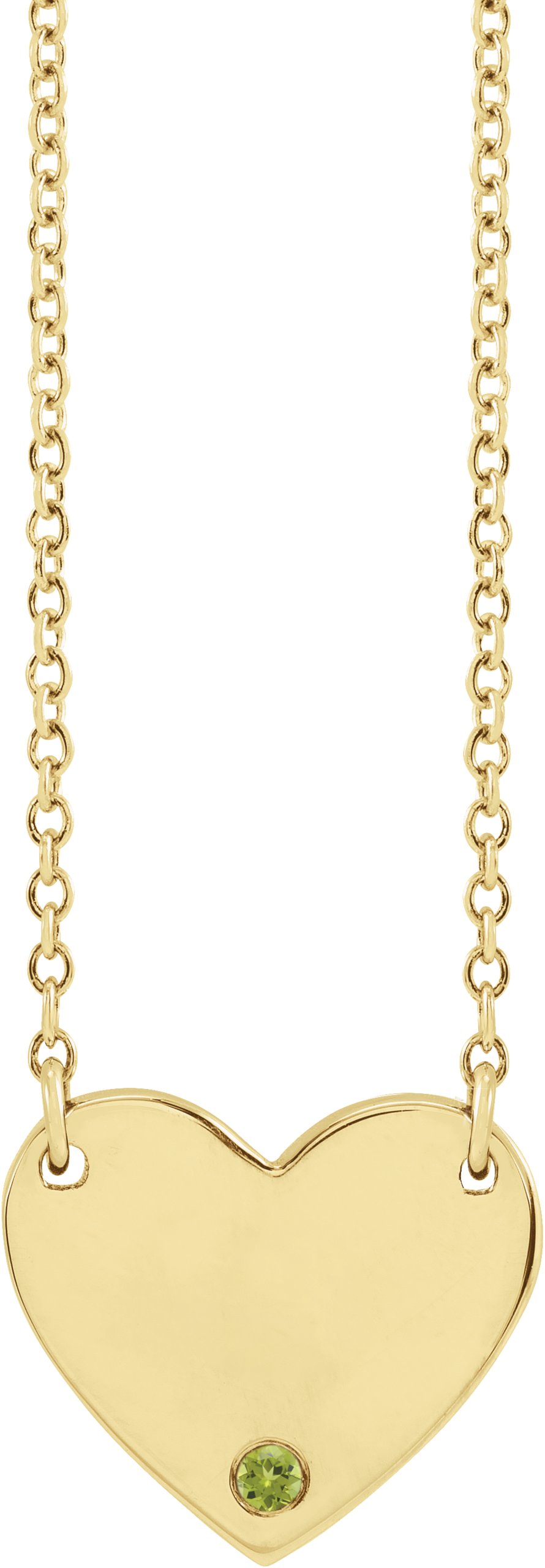 87582 / Necklace / Set / 14K Yellow / Round / Natural Peridot / 1.5 Mm / 18 In / Polished / Natural Peridot Engravable Heart Necklace