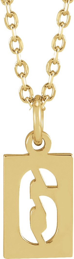 87483 / Necklace / 14K Yellow / Numeral 6 / 12.41 X 5.32 Mm / 16-18 In / Polished / Pierced Numeral Dog Tag Necklace
