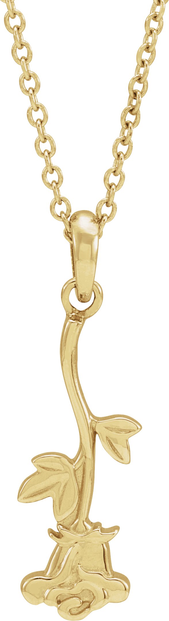 87735 / Necklace / 14K Yellow / 22.36 X 6.73 Mm / 16-18 In / Polished / Rose Necklace With Stem