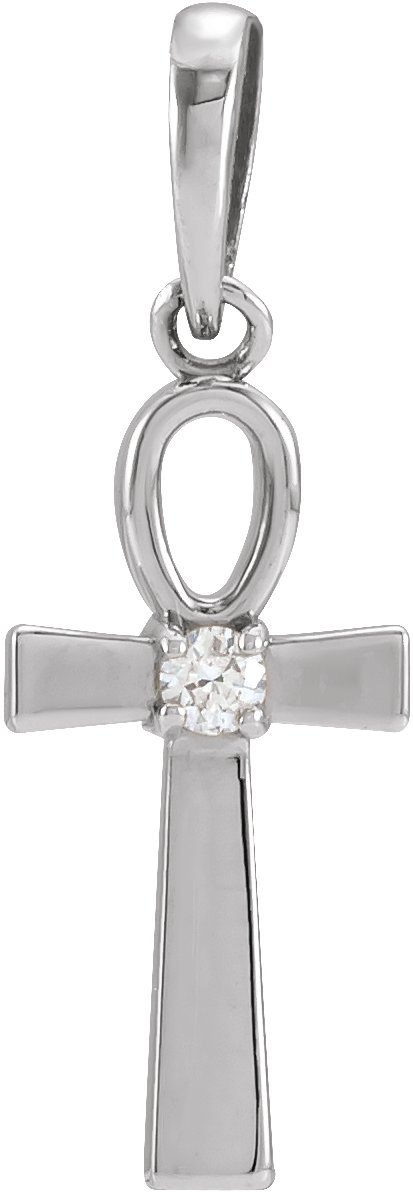 R42411 / Pendant / Set / Sterling Silver / Round / Natural Diamond / 2Mm :: 0.03 Ct / I1, G-H / Polished / .03 Ctw Natural Diamond Accented Ankh Cross Pendant