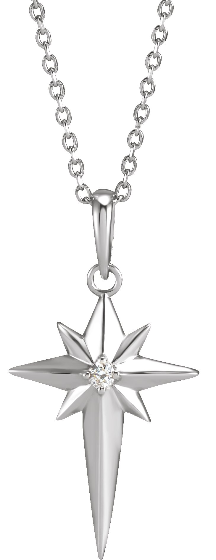 R42404 / Necklace / Set / Sterling Silver / Round / Natural Diamond / 1.8Mm :: 0.03 Ct / I1, G-H / 16-18 In / Polished / .03 Ctw Natural Diamond Star Cross Necklace
