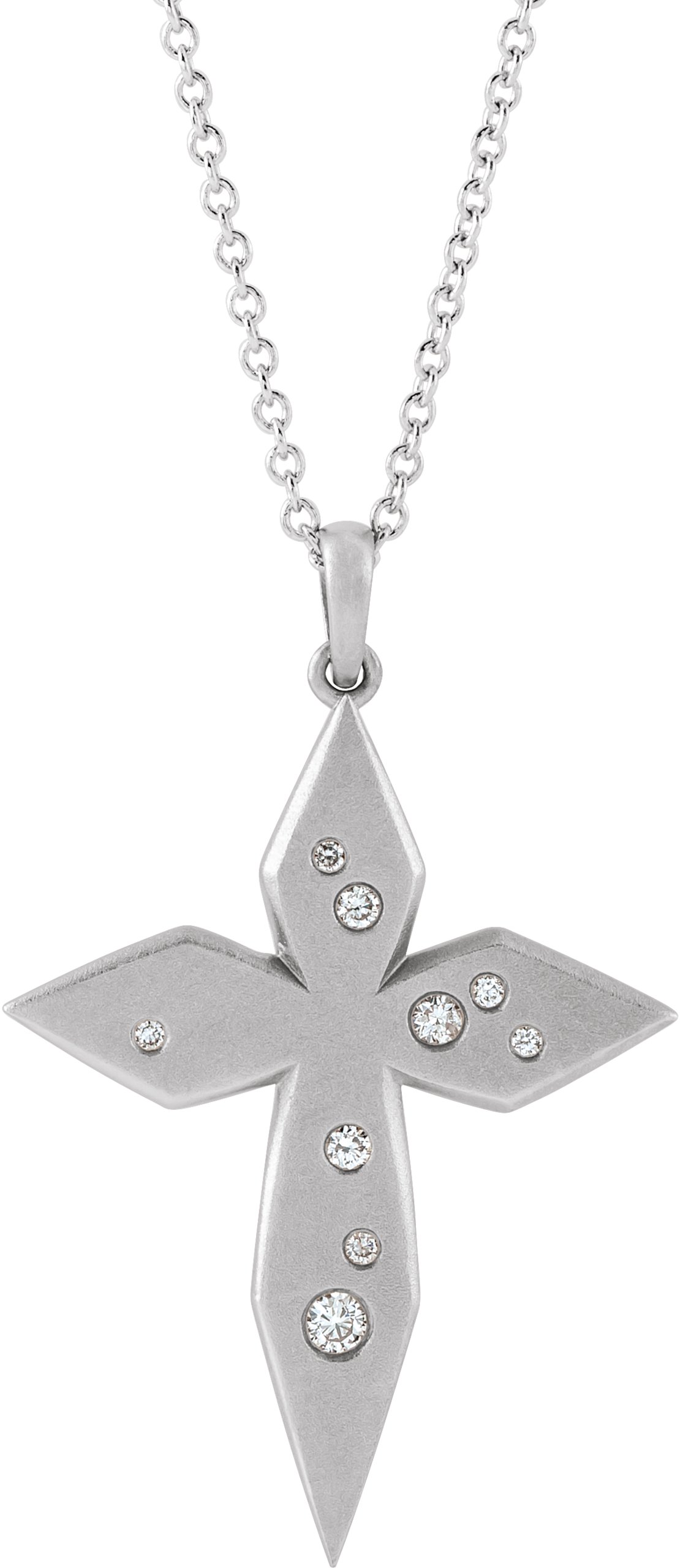 R42388 / Necklace / Set / Sterling Silver / Round / Natural Diamond / Natural Diamond / I1, G-H / 16-18 In / Polished / .08 Ctw Natural Diamond Cross Necklace