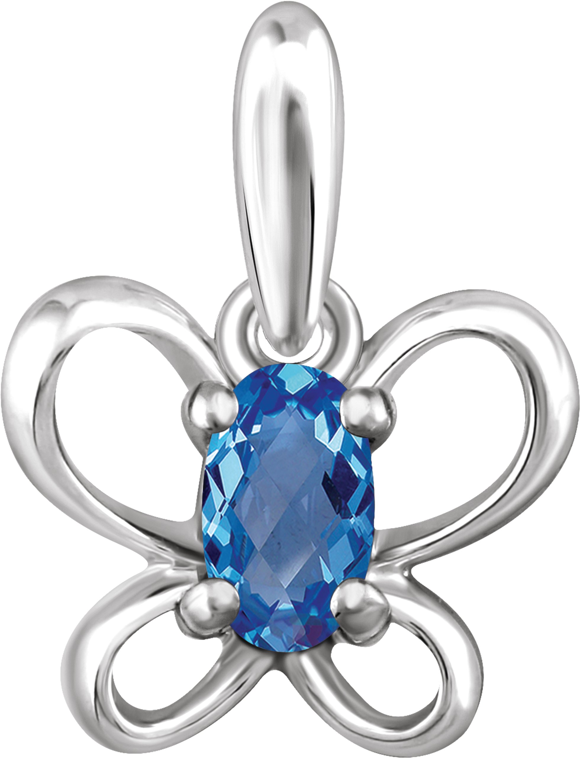 Sterling Silver 4x3 mm Oval December Youth Butterfly Birthstone Pendant