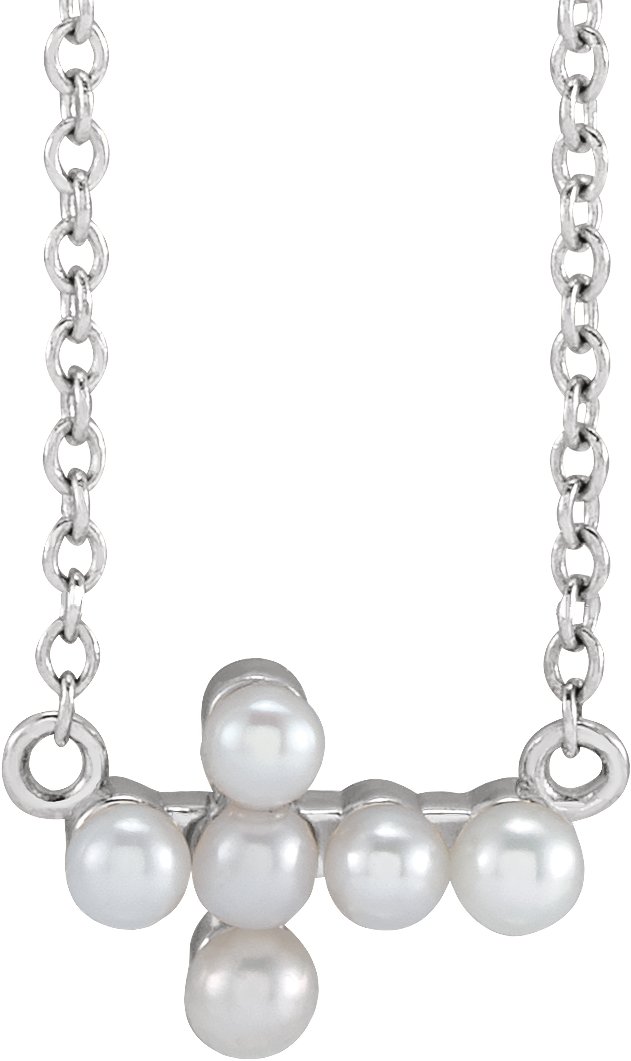 R50007 / Necklace / Set / Sterling Silver / Pearl / Cultured White Seed Pearl / 2 Mm / 16-18 In / Polished / Cultured White Seed Pearl Sideways Cross Necklace