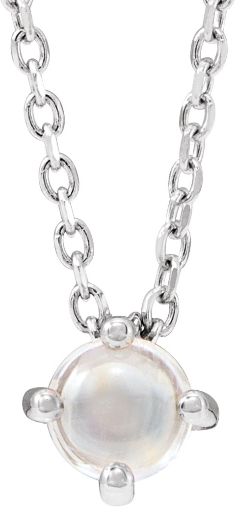 88059 / Necklace / Set / Sterling Silver / Round / Natural Rainbow Moonstone / 4 Mm / 16-18 In / Polished / Rainbow Moonstone Cabochon Necklace