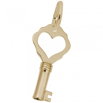14K Yellow Gold KEY W/HEART PLAIN Charm