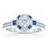 An elegant design this diamond engagement ring showcases a prong-set diamond & Sapphire halo that crowns the center stone within a vintage styled design. This style accommodates various center stone sizes & shapes. Available in Platinum as well as 18K and 14K White Yellow or Rose Gold. Priced as shown 0.28cts 14K White Gold