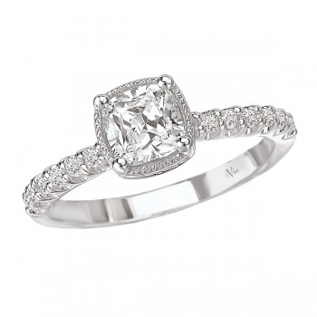 Diamond Engagement Ring in 14kt White Gold. (D.1/3 carat total weight) This item is a SEMI-MOUNT and it comes with NO CENTER STONE as shown but it will accommodate a 5.5mm cushion cut center stone.