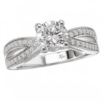 Diamond Semi-Mount Ring in 14kt White Gold with Split Shank. (D. 1/4 carat total weight) This item is a SEMI-MOUNT and it comes with NO CENTER STONE as shown but it will accommodate a 6.5mm round center stone.