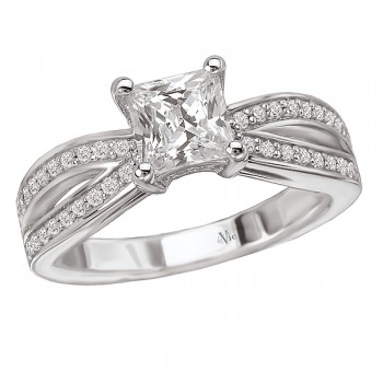 Diamond Ring in 14kt White Gold with Split Shank. (D.1/3 carat total weight)This item is a SEMI-MOUNT and it comes with NO CENTER STONE as shown but it will accommodate a 5.5mm princess cut center stone.