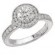 Round Halo Diamond Ring in 14kt White Gold with Milgrain Detail. (D. 1/3 carat total weight) This item is a SEMI-MOUNT and it comes with NO CENTER STONE as shown but it will accommodate a 6.5mm round center stone.
