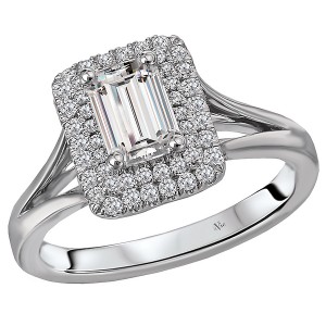 Halo Diamond Ring in 14kt White Gold. (D .07 carat total weight) This item is a SEMI-MOUNT and it comes with NO CENTER STONE as shown but it will accommodate a 6.5mm round center stone.