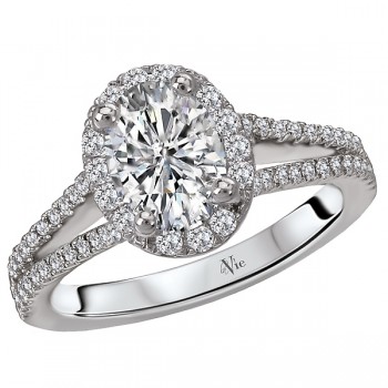 Split Shank Diamond Ring in 14kt White Gold with an Oval Halo. (D 1/4 carat total weight) This item is a SEMI-MOUNT and it comes with NO CENTER STONE as shown but it will accommodate a 7x5mm oval cut center stone.