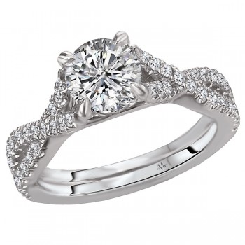 This Classic Diamond Ring Created in 14kt White Gold Features a Gorgeous Twisted Shank with Round Faceted Diamonds. (D 1/2 carat total weight) This ring is a SEMI-MOUNT and it comes with NO CENTER STONE as shown but it will accommodate a 6.5mm round center stone.